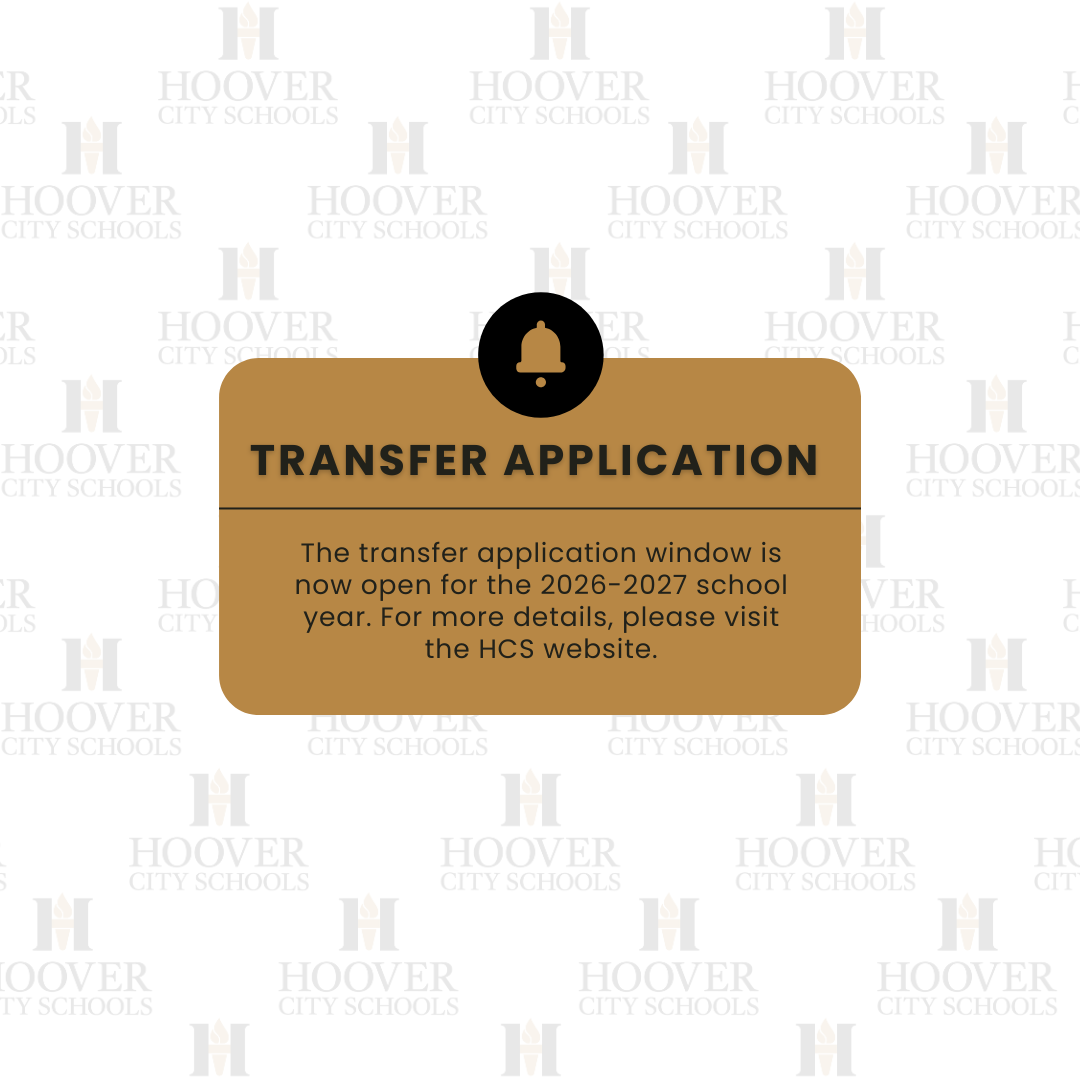The transfer application window is now open for the 2026-2027 school year. This only applies to students seeking to transfer to a Hoover school other than the Hoover school for which they are zoned...